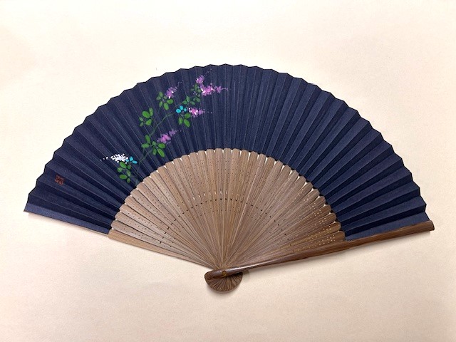 濃紺の扇面に初秋を彩る萩を描きました。
